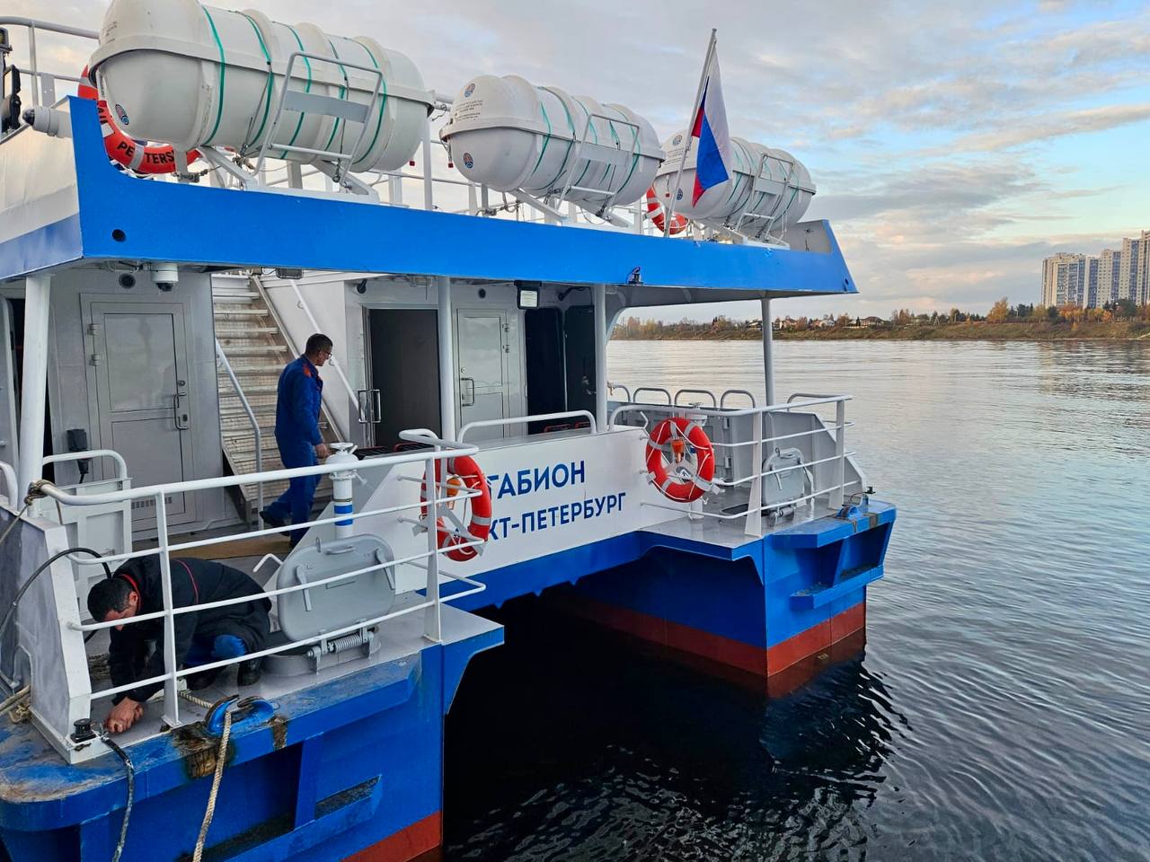 Строительство катамарана "Габион" началось в 2024 году, спустили судно на воду в июле 2025 года. Новый катамаран примет своих первых пассажиров в навигацию 2026 года.