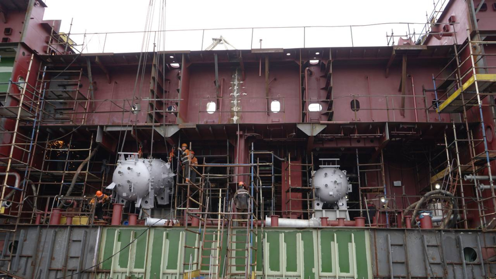 Специалисты "Балтийского завода" ОСК установили на борт строящегося атомного ледокола проекта 22220 "Ленинград" парогенераторы низкого давления (ПГНД).