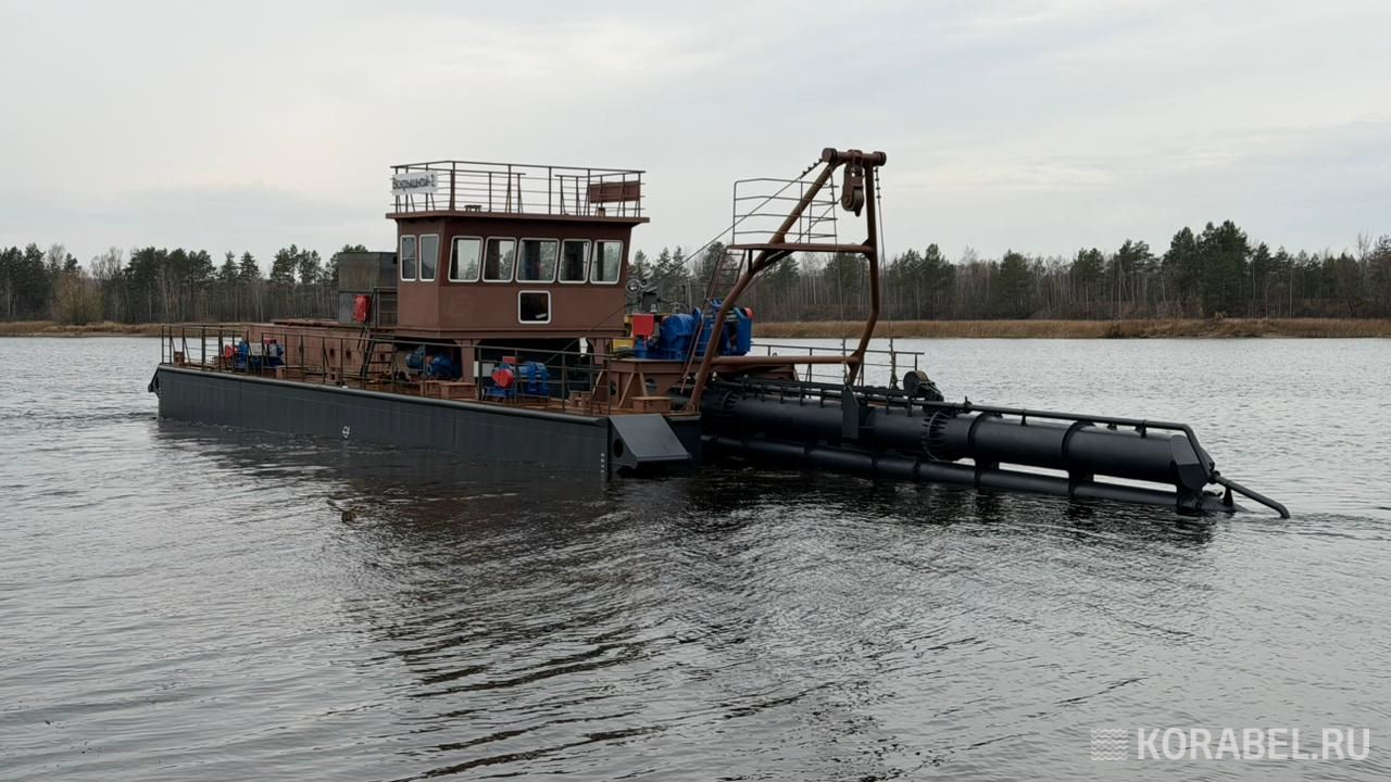 Несамоходный земснаряд был построен на производственной базе компании "Алтын Яр" по собственному проекту, затем части корпуса были привезены с базы на место спуска.