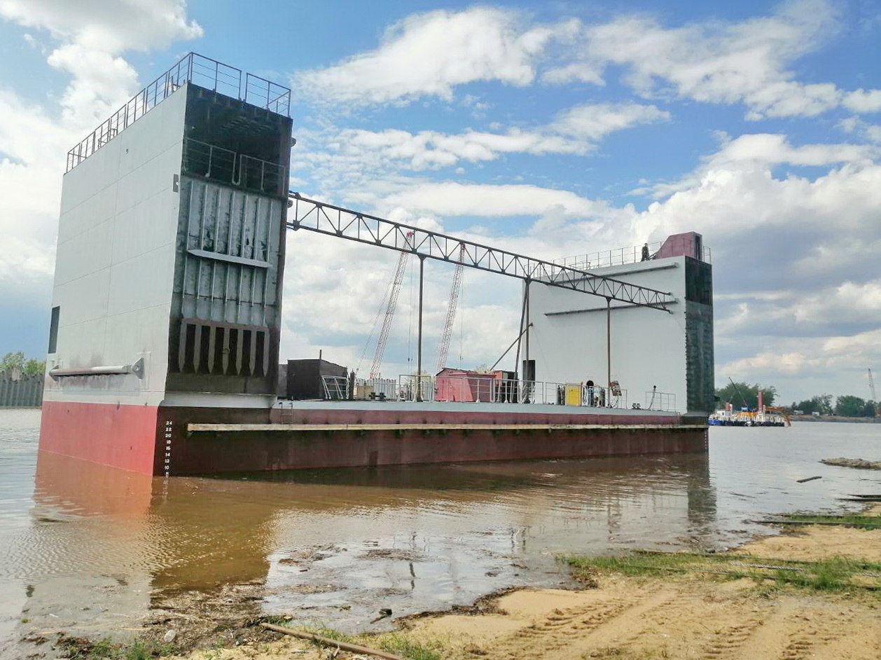 Как сообщалось ранее, основные модули плавдока проекта 28140С доставят в Архангельск до конца навигации. Блоки приходят на верфь уже с установленным оборудованием внутри. Так, с первыми пятью блоками прибыли на место дизель-генераторы, трансформаторные подстанции, балластные системы. Шестой модуль прибудет с установленными котлами.