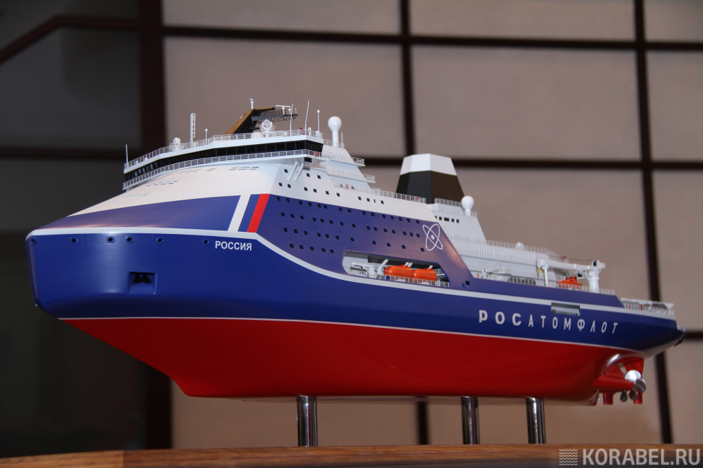 Судно "Россия" проекта 10510 станет самым мощным ледоколом в мире. Атомоход будет оснащен реакторами "РИТМ-400", суммарная мощность ледокола составит 120 МВт. Это позволит ледоколу разбивать льды толщиной до 4 м и прокладывать канал шириной 50 м.