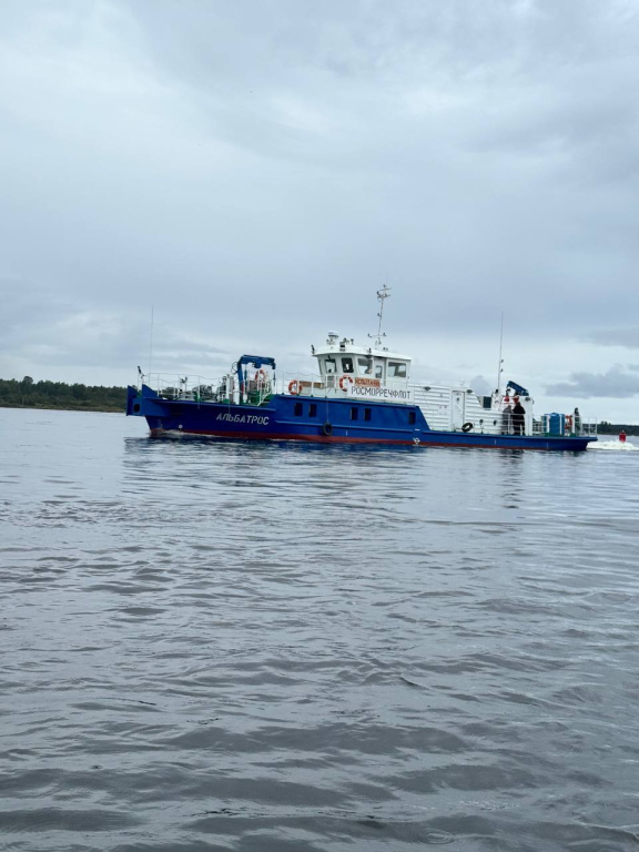 Подписаны акты приемки обстановочного судна "Альбатрос" проекта 3050.1А. Судно предназначено для обслуживания плавучих и береговых знаков судоходной обстановки, контроля глубин судового хода, периодического вождения методом толкания барж водоизмещением не более 400 тонн.