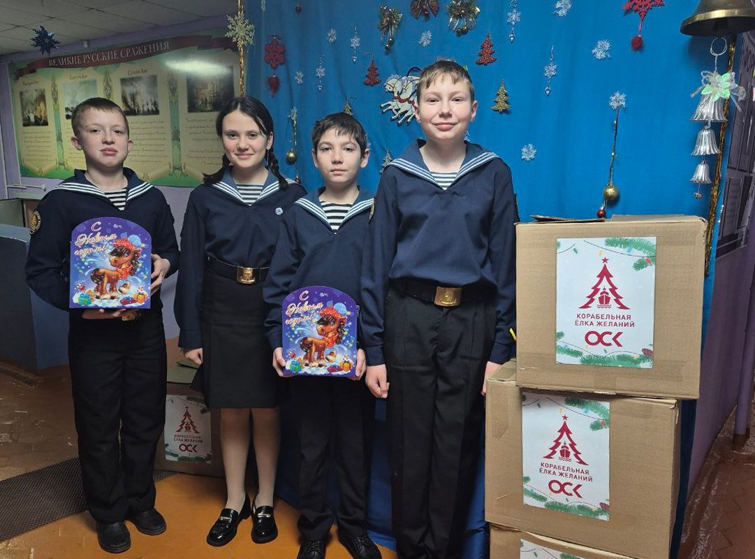Сладкие подарки от Деда Мороза передали корабелы Амурского судостроительного завода ОСК младшим курсантам городского Клуба юных моряков «Алые паруса» имени адмирала Г. И. Невельского.