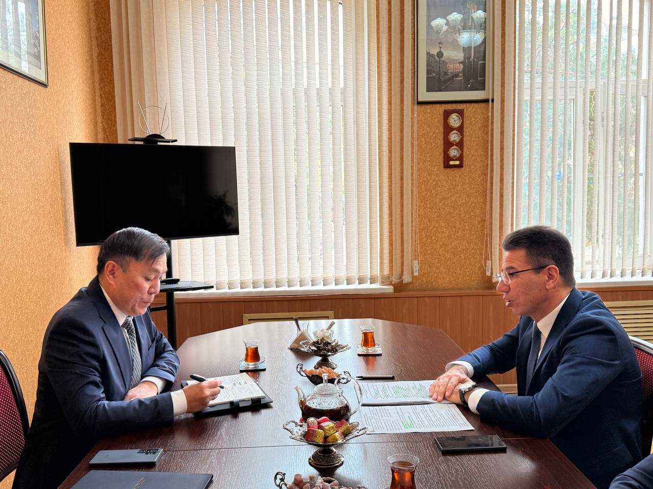 Текущие аспекты сотрудничества обсуждались в ходе рабочей встречи министра внешних связей Астраханской области Владимира Головкова с генеральным консулом Республики Казахстан в Астрахани Канатом Хасеновым.