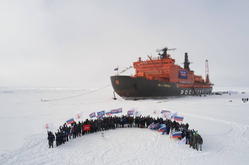Участники второго потока президентской программы "Время героев" достигли Северного полюса на атомном ледоколе "50 лет Победы".