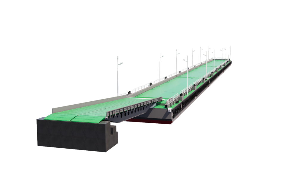 Проект причала 10900 разработан для ООО «Мурманский судоремонтный завод». По техническому заданию заказчика и в рамках интеграции с действующей инфраструктурой завода, проект предусматривает возможность стыковки понтонного причала с действующими на предприятии понтонами проекта ПМ-61.