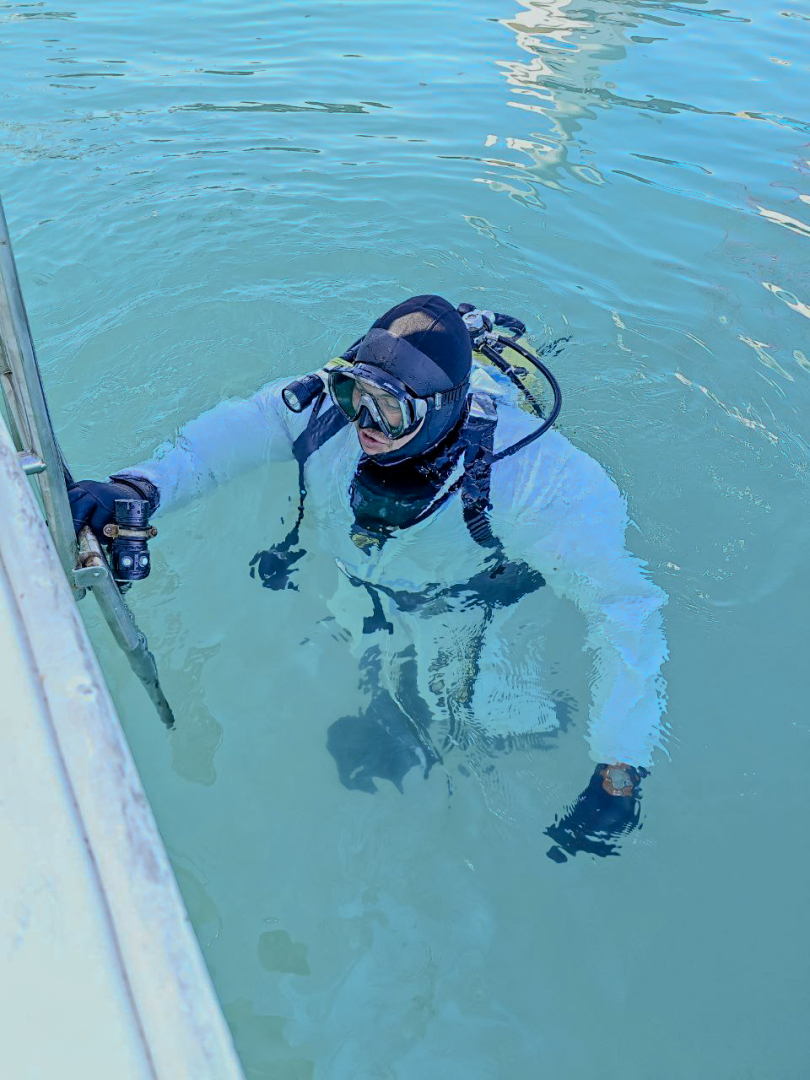 — Расскажите подробно про обязанности водолаза во время спуска судна.