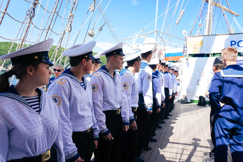 Будущие моряки под руководством трех наставников и экипажа фрегата будут нести ходовую вахту, выполняя обязанности впередсмотрящих, рулевых и мотористов, научатся поднимать и опускать паруса. Также курсантов ждут занятия, где они познакомятся с работой судовых механизмов и устройств.