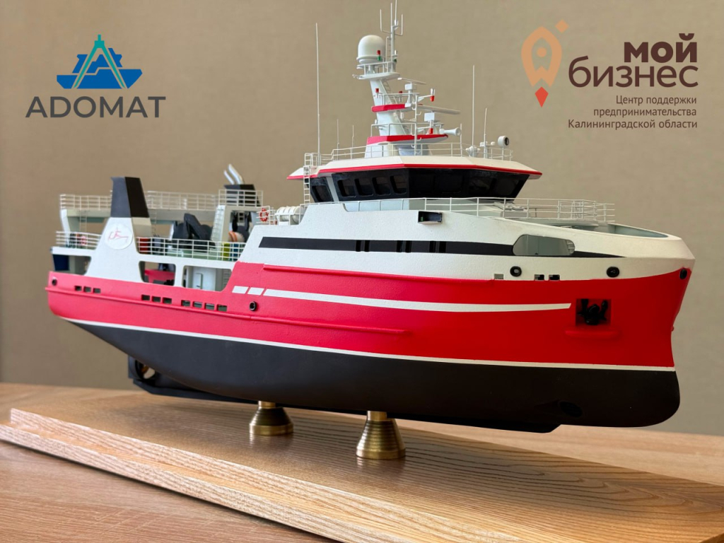 Также в 2025 г. в Калининграде на предприятии «СИРМФ» вступило в активную фазу строительства первое серийное судно проекта 174610. «Адомат» впервые представил на «НЕВЕ 2025» модель траулера проекта Т400К (совместная разработка с ООО «Си Тех») и еще два малых кормовых траулера концепт-проекта 24100 и 2220010.