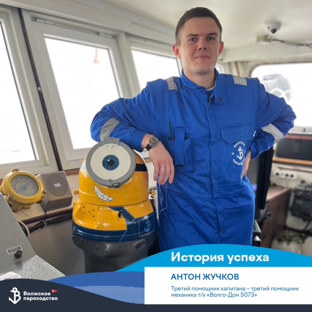 Он родом из Рязани, но окончил Нижегородское речное училище имени И.П. Кулибина. Для прохождения практики старшекурсники посоветовали ему именно нашу компанию. Ребята хвалили оплачиваемые учебные часы, медкомиссии и возможность заработать плавательный стаж. Первую практику Антон прошел в должности моториста-рулевого на "Волго-Доне 153". Тогда всё казалось необычным и интересным: огромное судно, новые технические знания. Сложностей наш герой не ощущал и было очень интересно.
