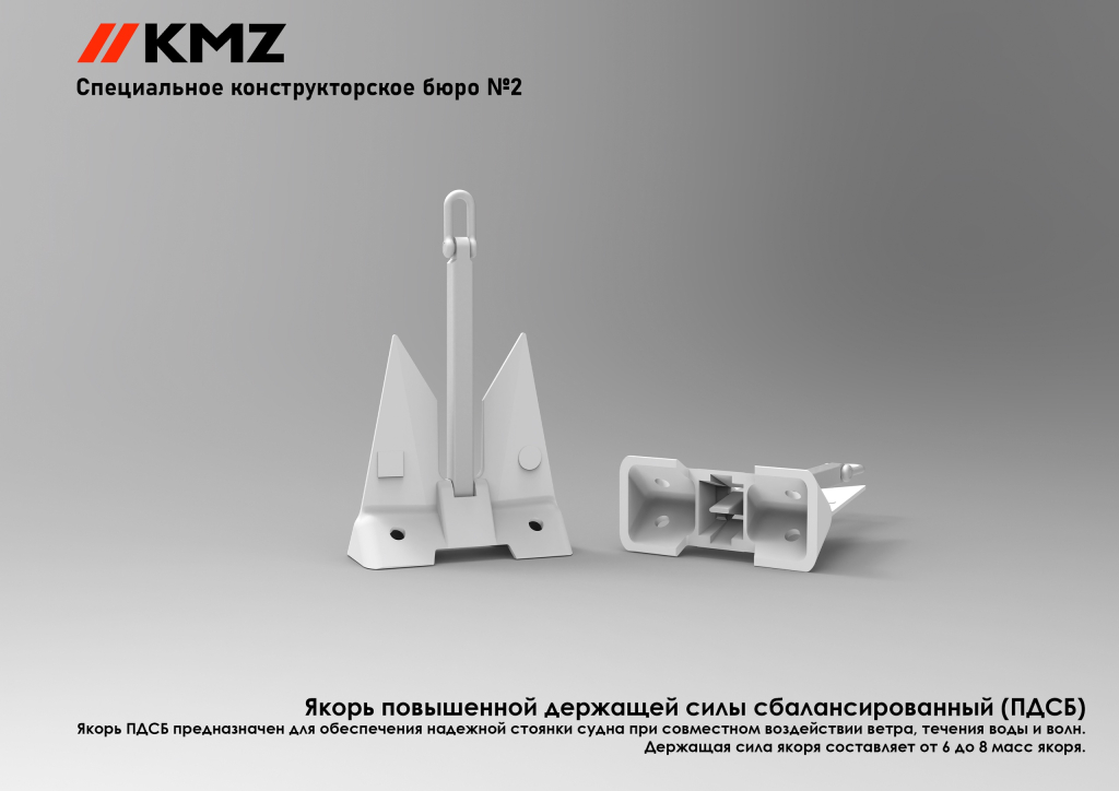 Якорь ПДСБ обеспечивает надежную стоянку судна при совместном воздействии ветра, течения воды и волн. Его держащая сила вдвое превышает держащую силу якоря Холла и составляет от 6 до 8 масс якоря.