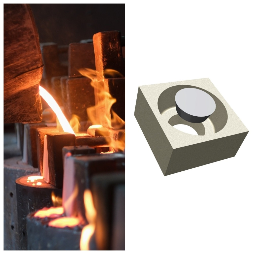 В основе новой технологии — переработанная и усовершенствованная литниковая чаша с песчаной пробкой, которая используется для изготовления крупных отливок из черных сплавов. Литниковая чаша — это резервуар, который принимает металл из разливочного ковша и подаёт его через различные элементы литниковой системы в рабочую полость литейной формы.