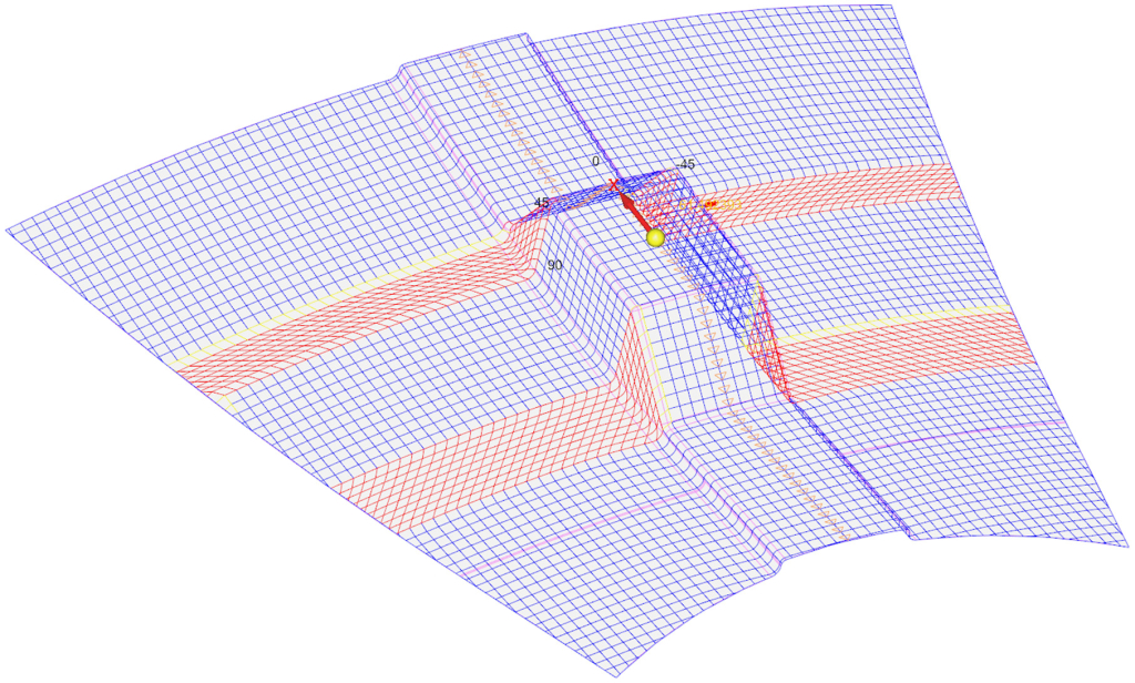– Именно так. Есть две основных задачи. Первая – формирование слоев с пониманием их количества и направления выкладки, анализ драпируемости и подготовка технологических слоев с выкройками, чтобы нарезать ткань и выполнить подрезки для качественной выкладки ткани по форме будущей детали. Результатом такого анализа является трехмерная сетка, цветовая раскраска которой показывает нам отклонение волокон материала. Вторая задача – это формирование надрезов и развертки. В итоге инженер получит гладкий контур развертки на плоскости уже с учетом надреза.