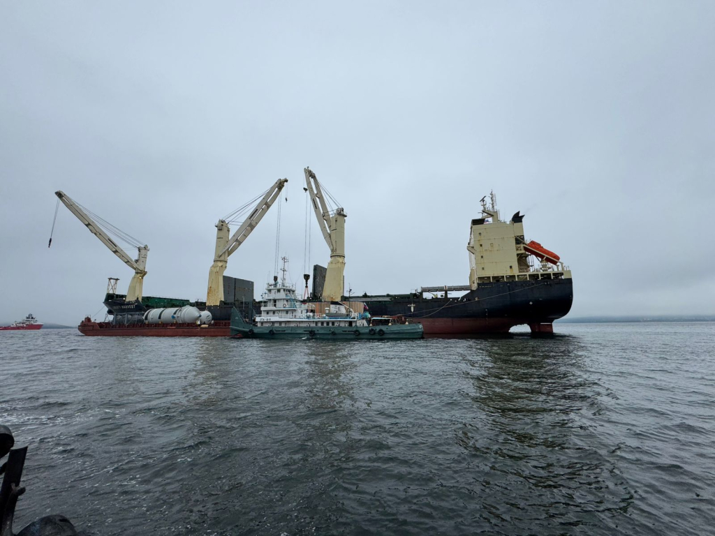 Груз перегрузили на баржу Амурского пароходства, далее барже-буксирный состав пойдёт по Амурскому лиману через морской порт Николаевск-на-Амуре до места назначения. Операция по перегрузке проходила под контролем службы капитана морского порта. Нарушений требований безопасности мореплавания и экологических норм не установлено.