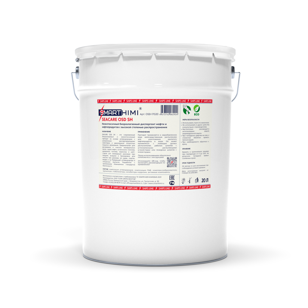 2. Физико-химические методы. Эти методы направлены на изменение физико-химических свойств нефти для облегчения ее сбора или биодеградации. Диспергенты – это химические вещества, которые расщепляют нефтяную пленку на мелкие капли, увеличивая площадь поверхности соприкосновения с водой и ускоряя естественный процесс разложения нефти микроорганизмами. Однако, применение диспергентов требует осторожности, так как некоторые из них могут быть токсичными для морской флоры и фауны. Поэтому стоит выбирать качественный продукт. SEACARE OSD SH от SmartHimi поддерживает высокие стандарты безопасности и снижает экологическое воздействие на природу и фауну.