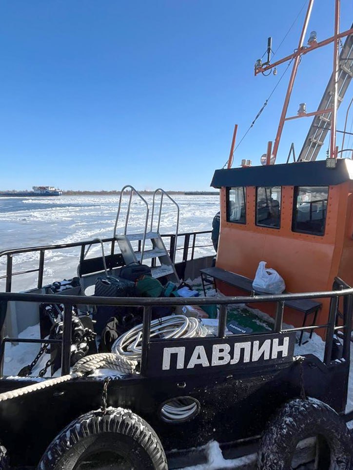 — Из-за сложной ледовой обстановки рейсы на воздушной подушке оказались невозможны. До судов добирались на ледокольном буксире «Павлин».