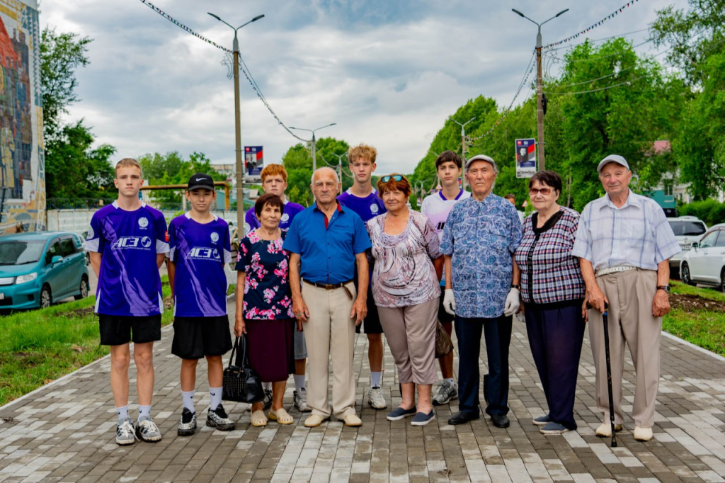 На открытие обновленной аллеи заводчане пригласили участников Трудового фронта, Ветеранов Труда, Заслуженных амурских корабелов и юных спортсменов - футболистов из детской школы олимпийского резерва №1, которых опекает предприятие. Присутствовали также главный инженер ПАО "АСЗ" В. Чесноков и заместитель генерального директора завода по кадрам и административным вопросам О. Киница.