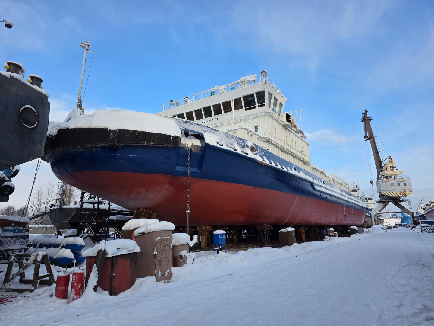По его словам, параллельно завершены работы по очистке и покраске, теперь корпус ледокола имеет цвет российского триколора.