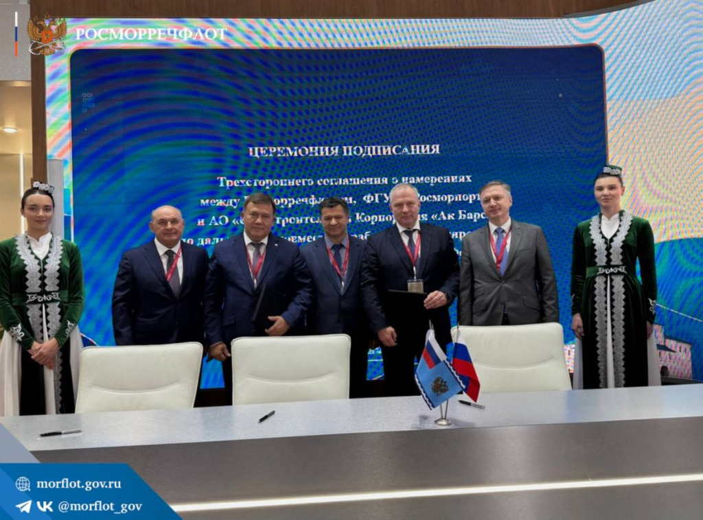 Под документом свои подписи поставили руководитель Росморречфлота Андрей Тарасенко, генеральный директор ФГУП "Росморпорт" Сергей Пылин и генеральный директор Судостроительной корпорации "Ак Барс" Ренат Мистахов.