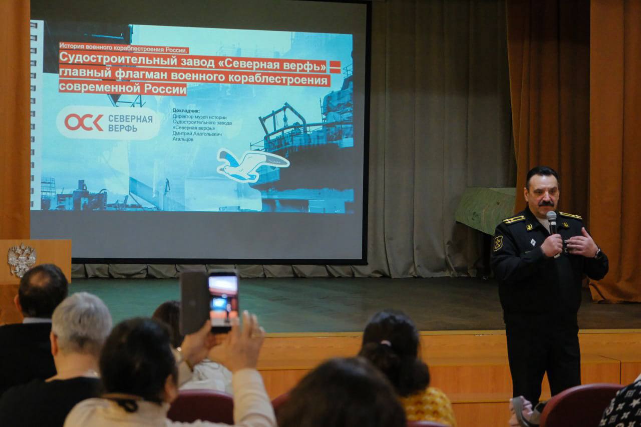 Дмитрий Агальцов напомнил об истории завода, о кораблях, вошедших в летопись отечественного флота, и о конструкторах и инженерах, чьи решения определяли развитие отрасли. Он подчеркнул: каждый корабль — результат труда большой команды, где ценят профессионализм, ответственность и умение работать на общий результат.