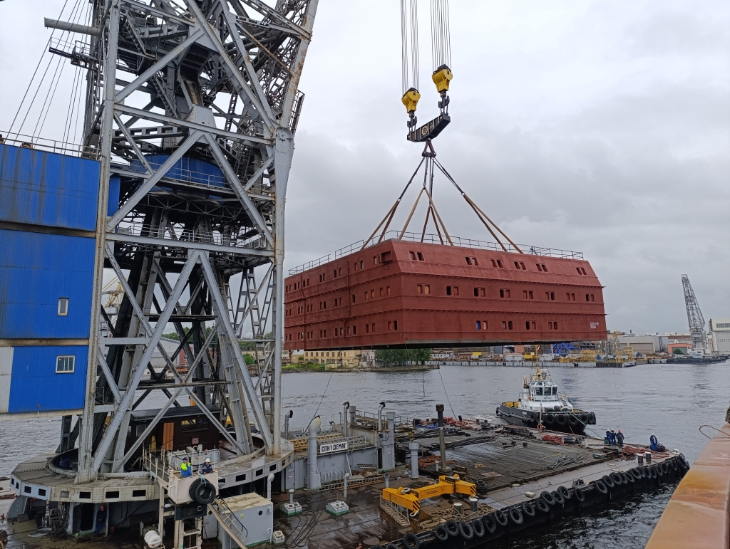 "Балтийцы впервые установили на ледокол проекта 22220 укрупненный и блок секций жилой надстройки. В нем уже смонтированы трубопроводы вентиляции и общесудовых систем, двери, иллюминаторы, электрослесарное насыщение, – отметил генеральный директор Балтийского завода ОСК Александр Коновалов. – Мы восстанавливаем свои компетенции и будем развивать технологию крупноблочного строительства. В планах работа с более насыщенными и крупными конструкциями весом от 800 тонн".