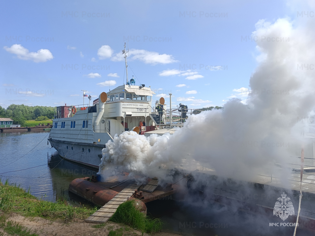 Целью учений была заявлена отработка взаимодействия пожарных подразделений и администрации объекта при тушении возможного пожара на объекте речного транспорта.