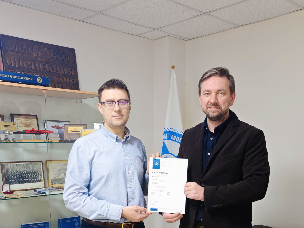 По итогам аудита компании выдан соответствующий сертификат Регистра, с сохранением даты первоначальной сертификации. Старший эксперт ССК Балтийского филиала РС Антон Виноградов вручил документ генеральному директору компании Петру Опекунову.