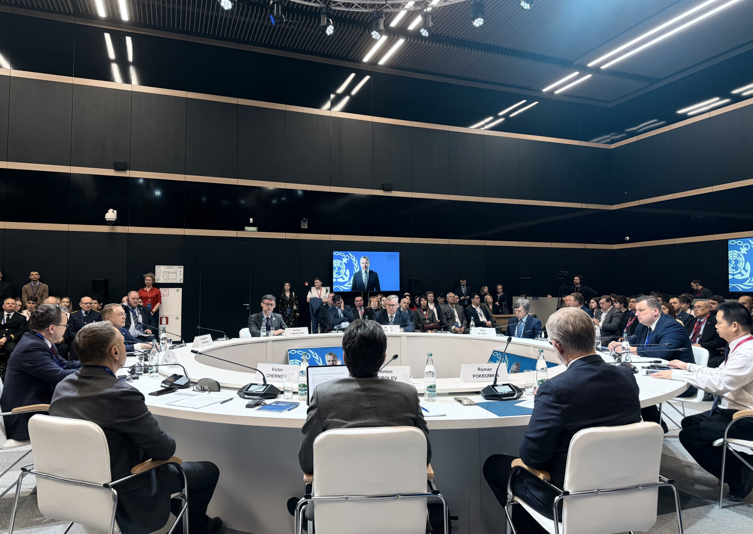 Модератором круглого стола выступил постоянный представитель РФ при Международной морской организации (ИМО) Юрий Меленас. Директор департамента по безопасности на море Секретариата ИМО Дамьен Шевалье рассказал о проекте поправок к конвенции МАРПОЛ, касающихся предельного содержания парниковых газов в судовом топливе (GFI).