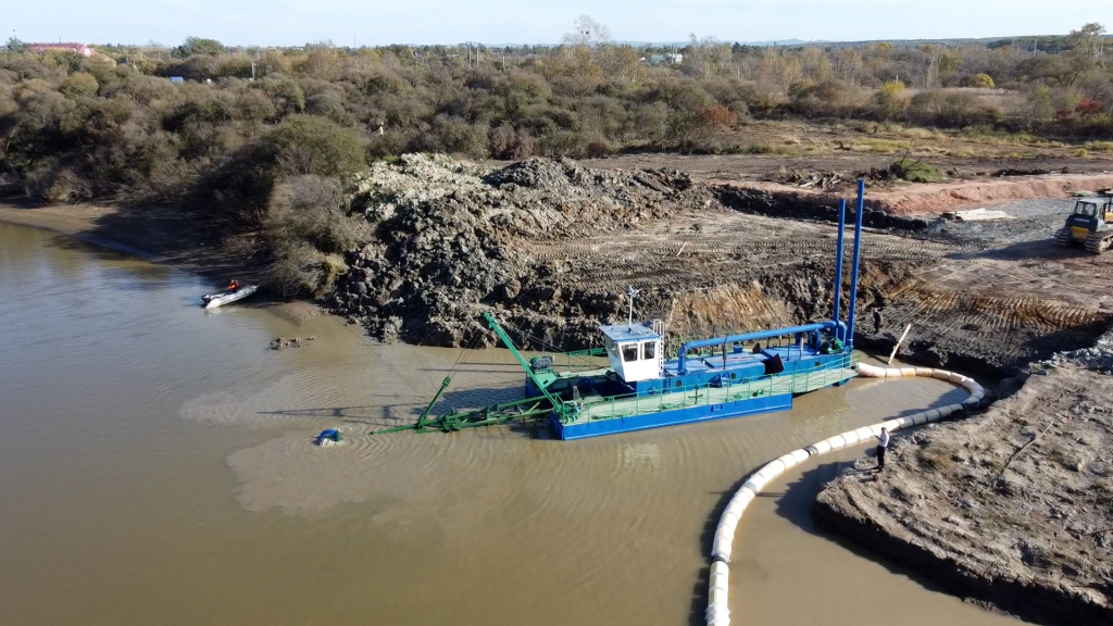 Всего для защиты Приморья от наводнений приобретено две дноуглубительные машины. Второй земснаряд немного другой конструкции - за счёт шагающих устройств он сможет работать на болотистой местности, сообщает пресс-служба правительства Приморского края.