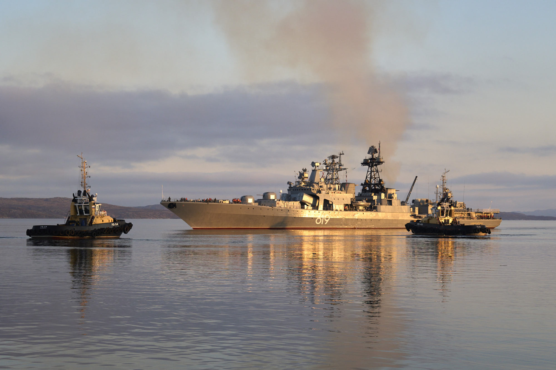 Начальник штаба Северного флота вице-адмирал Эдуард Михайлов принял доклад командира отряда боевых кораблей и судов обеспечения капитана 1 ранга Станислава Варика об успешном выполнении поставленных задач. В ходе торжественного митинга он, от имени командующего Северным флотом адмирала Константина Кабанцова, поздравил военных и гражданских моряков с завершением дальнего арктического похода и прибытием в родную базу. По его словам, завершившийся четырнадцатый по счету арктический поход продолжался около двух месяцев и охватил акваторию от архипелага Земля Франца-Иосифа до Северной Земли.