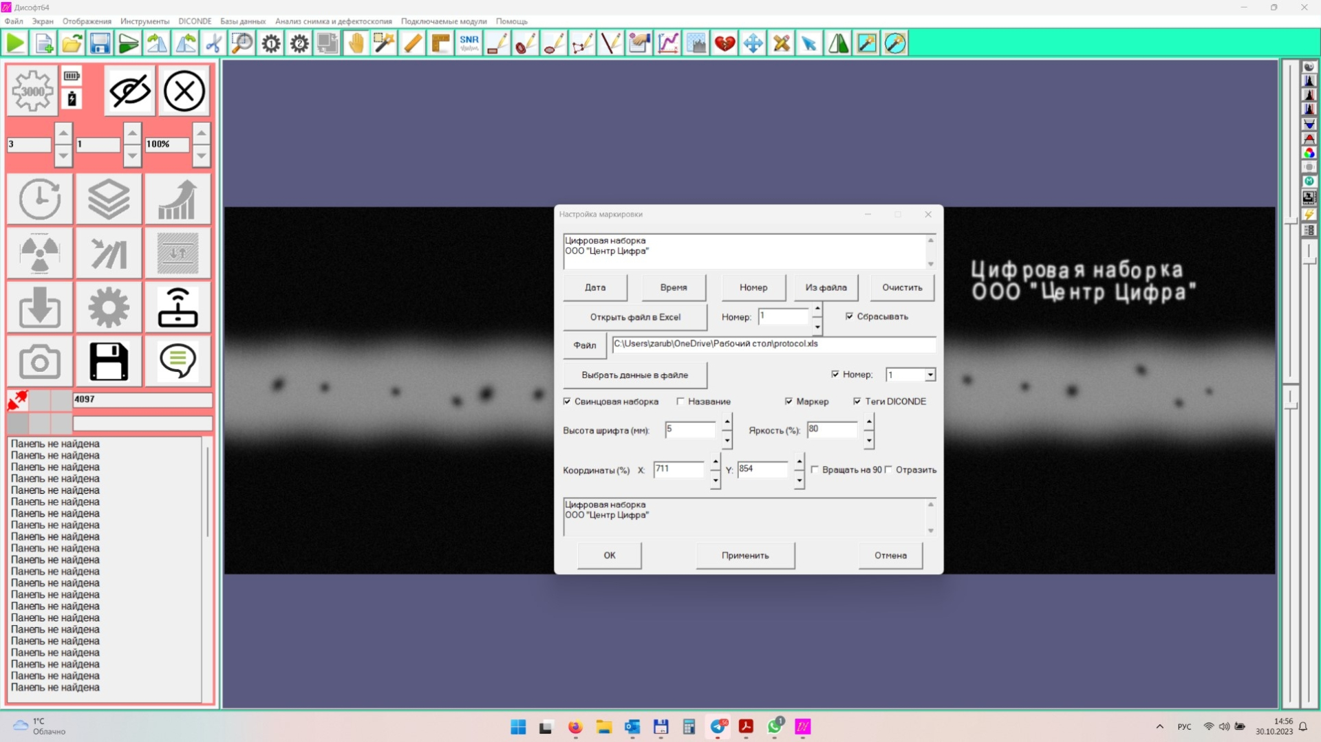 Разработанное специалистами ООО «Центр Цифра» программное обеспечение для цифровой радиографии Дисофт предназначено для получения радиографических изображений, обработки полученного изображения, измерений на изображении линейных размеров и интенсивности, архивирования изображений и результатов контроля в базе данных.