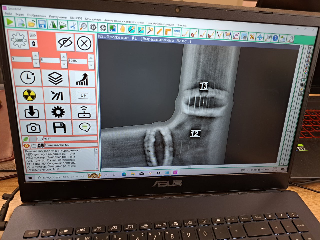 - имеет широкий измерительный функционал (измерение интенсивности в любой точке изображения, линейных размеров дефектов, расстояния между дефектами, вычисление площади дефектов; измерение толщины металла в любой точке изображения);