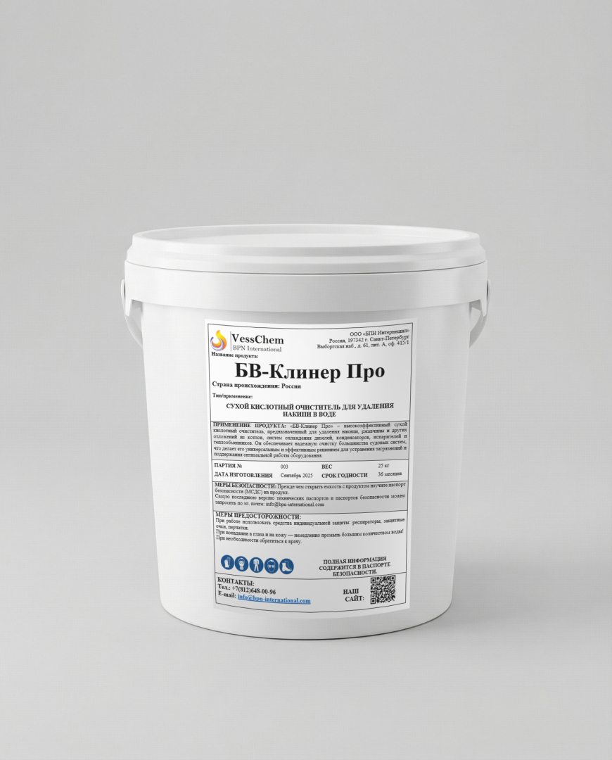- БВ-Клинер: Высококонцентрированная жидкая щелочная присадка для прецизионного контроля уровня pH. Содержит ингибиторы коррозии и летучие амины, поддерживая идеальный баланс водной среды.