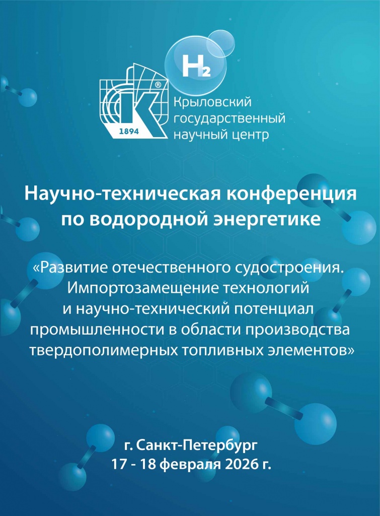 В Крыловском государственном научном центре 17−18 февраля 2026 года состоится научно-техническая конференция по водородной энергетике «Развитие отечественного судостроения. Импортозамещение технологий и научно-технический потенциал промышленности в области производства твердополимерных топливных элементов».