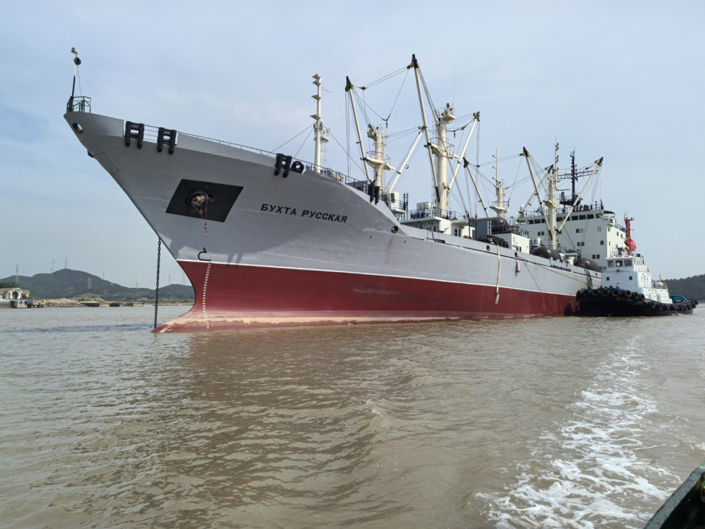 Российский морской регистр судоходства провел очередное освидетельствование рефрижераторного судна "Бухта Русская". Объем работ включил освидетельствование подводной части судна в доке, замеростаточных толщин, инспекцию винторулевой группы, а также техническое наблюдение в процессе ремонта.