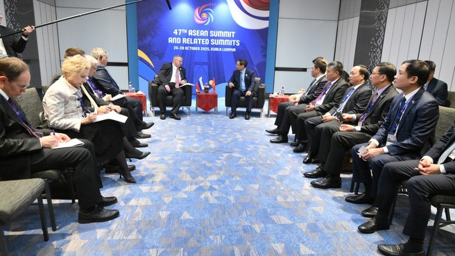 На полях 20-го Восточноазиатского саммита в Малайзии заместитель председателя правительства РФ Алексей Оверчук провёл рабочую встречу с премьер-министром Вьетнама Фам Минь Тинем.