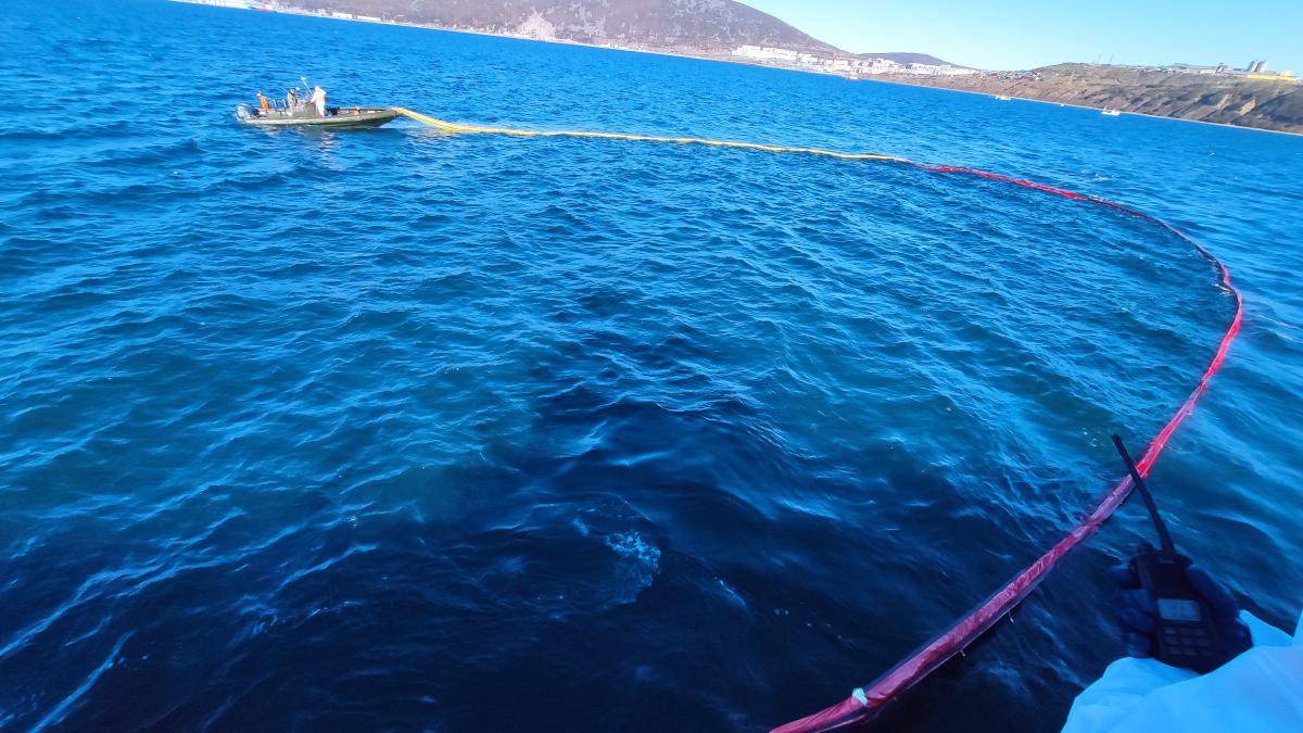 Для ликвидации последствий "аварии" были оперативно задействованы спасатели Сахалинского филиала Морспасслужбы, рейдовый катер "Инспектор Борисов" и буксир "Александр Солженицын". В ходе операции специалисты провели разведку в зоне чрезвычайной ситуации, развернули необходимые силы и средства, а также установили боновые заграждения для предотвращения распространения пятна, сообщает ФГБУ "Морспасслужба".