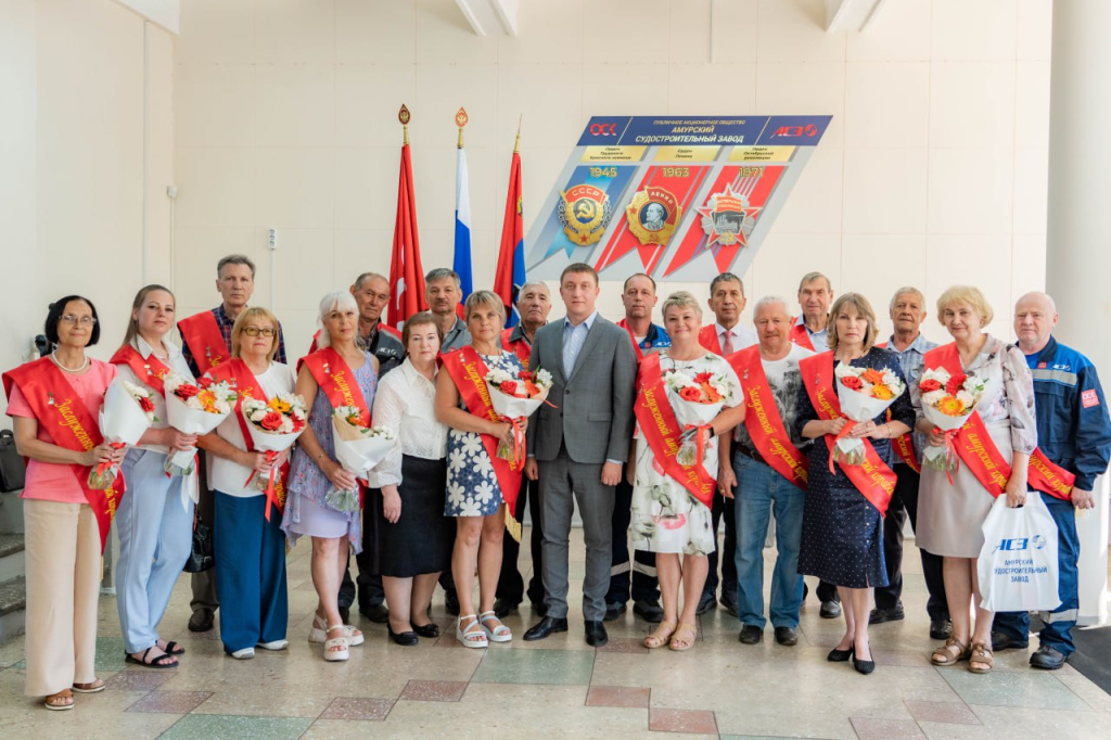 Совместным решением профсоюза и работодателя, в связи с 89-ой годовщиной со дня пуска в эксплуатацию Амурского судостроительного завода ОСК и, учитывая большие трудовые заслуги и безупречную работу на предприятии, 20-ти заводчанам присвоено звание "Заслуженный амурский корабел". Фотографии 25-ти амурских корабелов занесены на заводскую Доску почета.