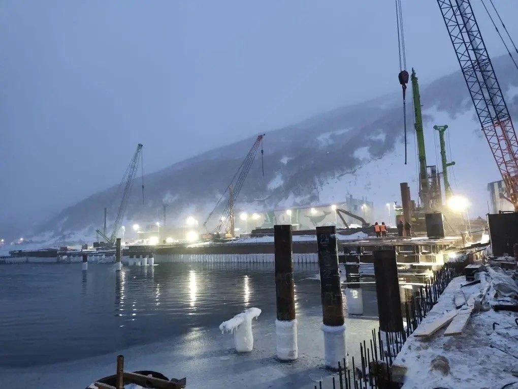 На Восточном моле идут гидротехнические работы и обратная засыпка, организованы временные технологические площадки. На Западном моле ведутся работы по возведению временных площадок.