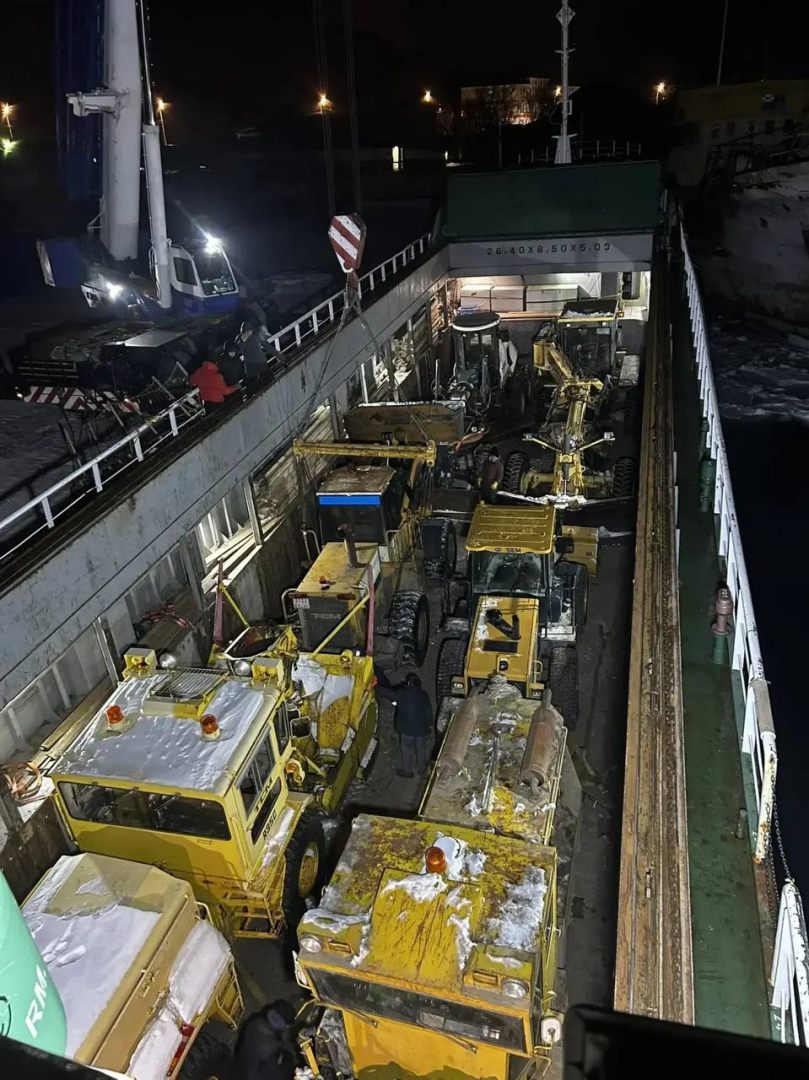 Сегодня ночью из порта Корсаков в Петропавловск-Камчатский отправилось грузовое судно «Виктор». На его борту — несколько грейдеров, шнекоротеров и фронтальных погрузчиков для расчистки краевого центра после сильного снегопада.