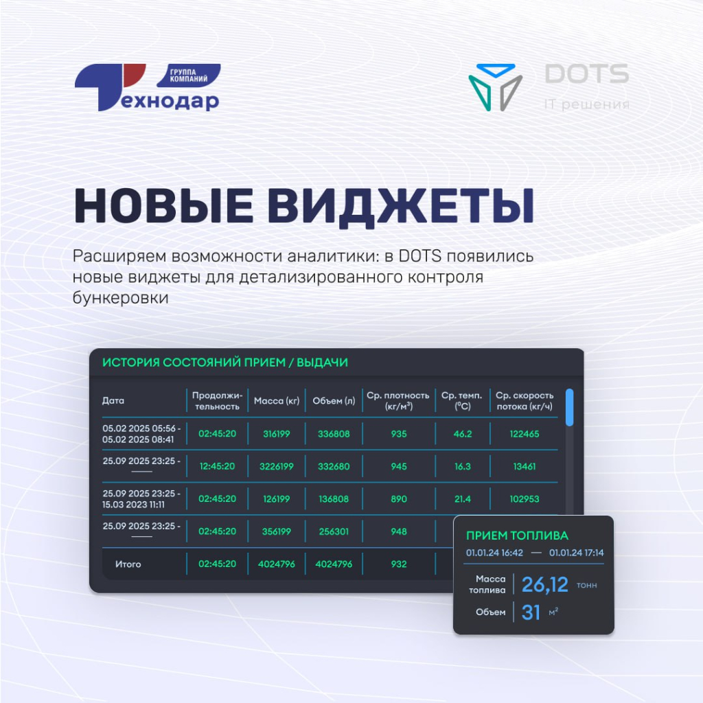 В программном обеспечении появились новые виджеты для детализированного контроля бункеровки.