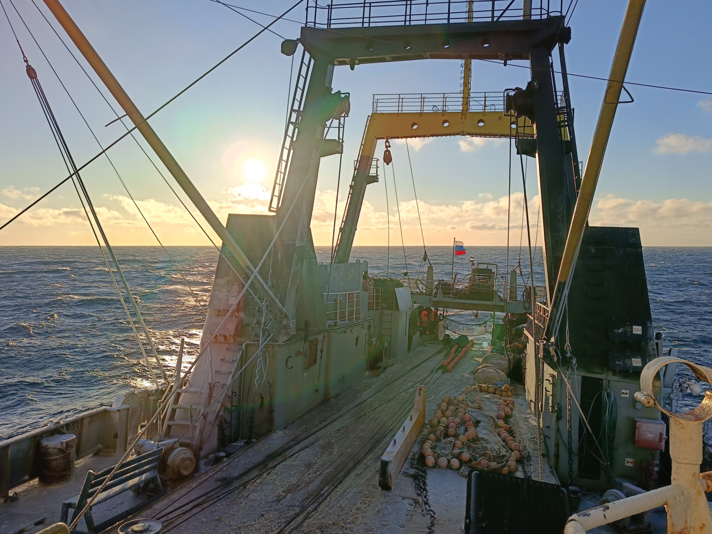 Специалисты провели тралово-акустическую съемку рыб и промысловых беспозвоночных в Исключительной экономической зоне России и открытой части моря. За время экспедиции судно прошло около 5 900 морских миль, выполнило более 200 донных тралений, общая площадь исследованной акватории составила 111 тыс. морских миль.