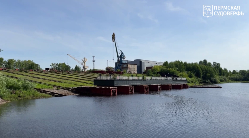 Пермская судоверфь спустила на воду по слипу причал для города Соликамска.