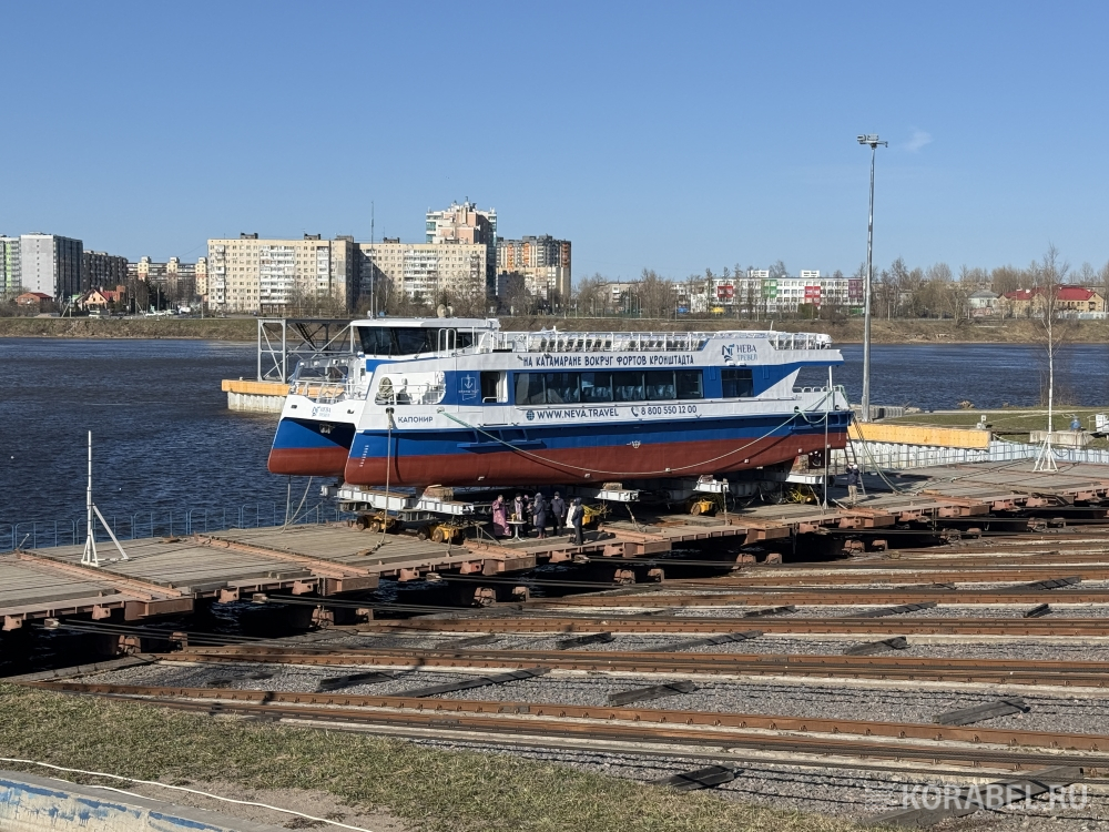 На Средне-Невском судостроительном заводе сегодня, 8 апреля, состоялась торжественная церемония спуска на воду и передачи заказчику четвертого экскурсионно-прогулочного катамарана проекта 04710 «Соммерс» — «Капонир».