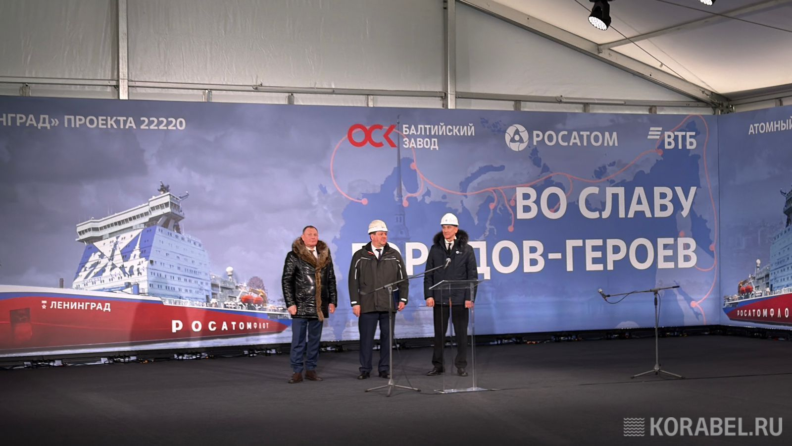 На «Балтийском заводе» ОСК сегодня, 18 ноября, состоялась закладка седьмого универсального атомного ледокола проекта 22220 «Сталинград». Акт о закладке нового атомохода подписали генеральный директор ФГУП «Атомфлот» Яков Антонов, директор филиала по атомным судам ФАУ «Российский морской регистр судоходства» Олег Яшенькин и генеральный директор «Балтийского завода» ОСК Александр Коновалов.