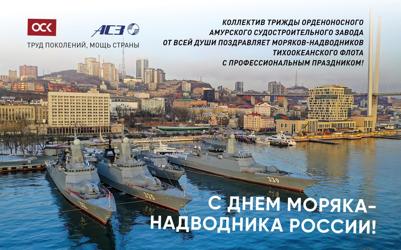 Коллектив трижды орденоносного Амурского судостроительного завода ОСК поздравляет с Днем моряка-надводника экипажи кораблей, построенных амурскими корабелами.