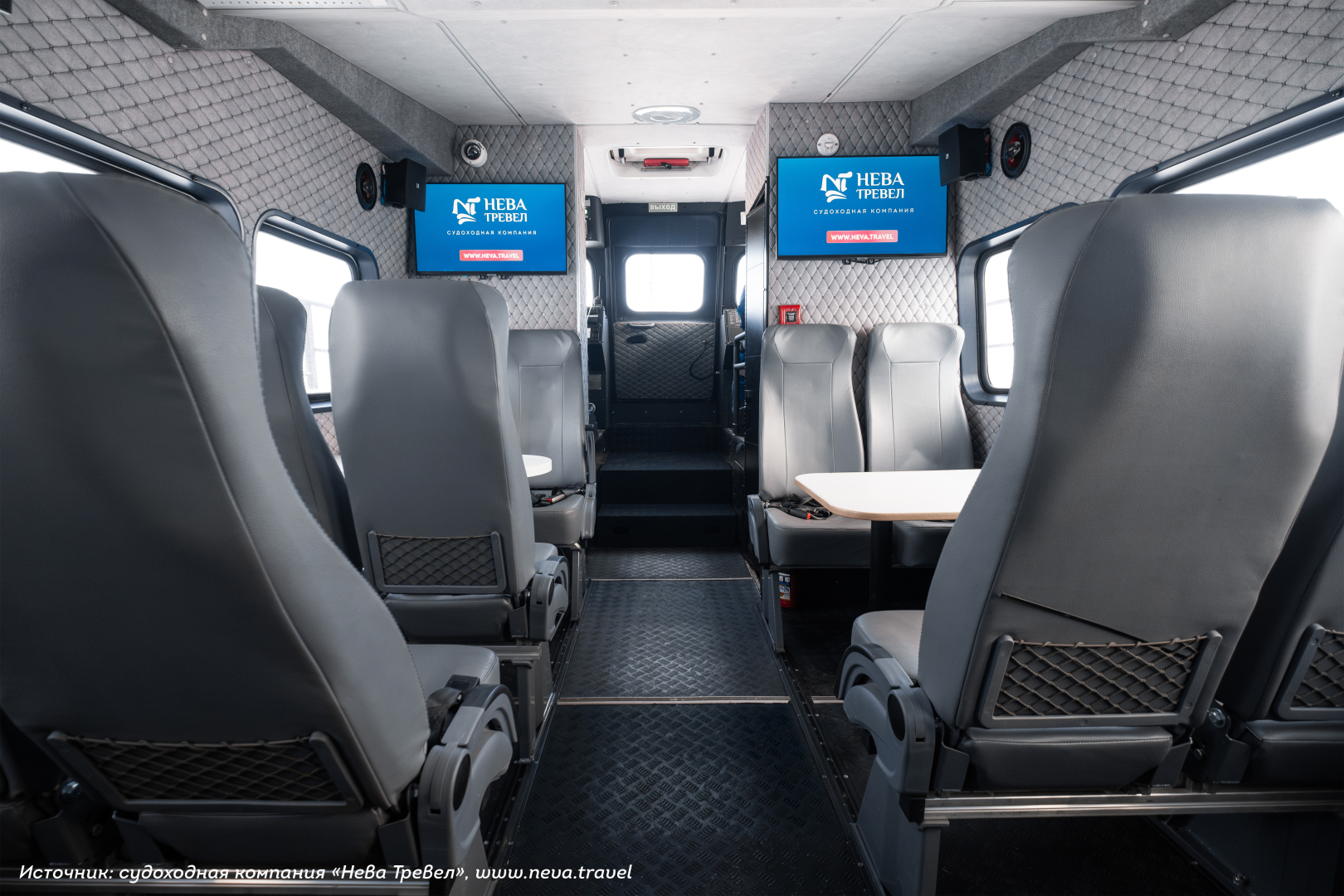 Новые суда оборудованы удобными креслами, столиками и мультимедийной системой. В числе преимуществ новых судов — просторный салон, увеличенное (по сравнению с проектом «Спутник 12») количество посадочных мест, просторная площадка для фотосъемок во время остановок судна, скорость и маневренность «Вихрей». В компании отмечают, что расширение флота позволит увеличить доступность зимних водных прогулок для жителей и гостей города, а также предлагают использовать суда для проведения корпоративных мероприятий и выездных тимбилдингов, сообщает Telegram-канал Нева Тревел | Водные прогулки по СПб.