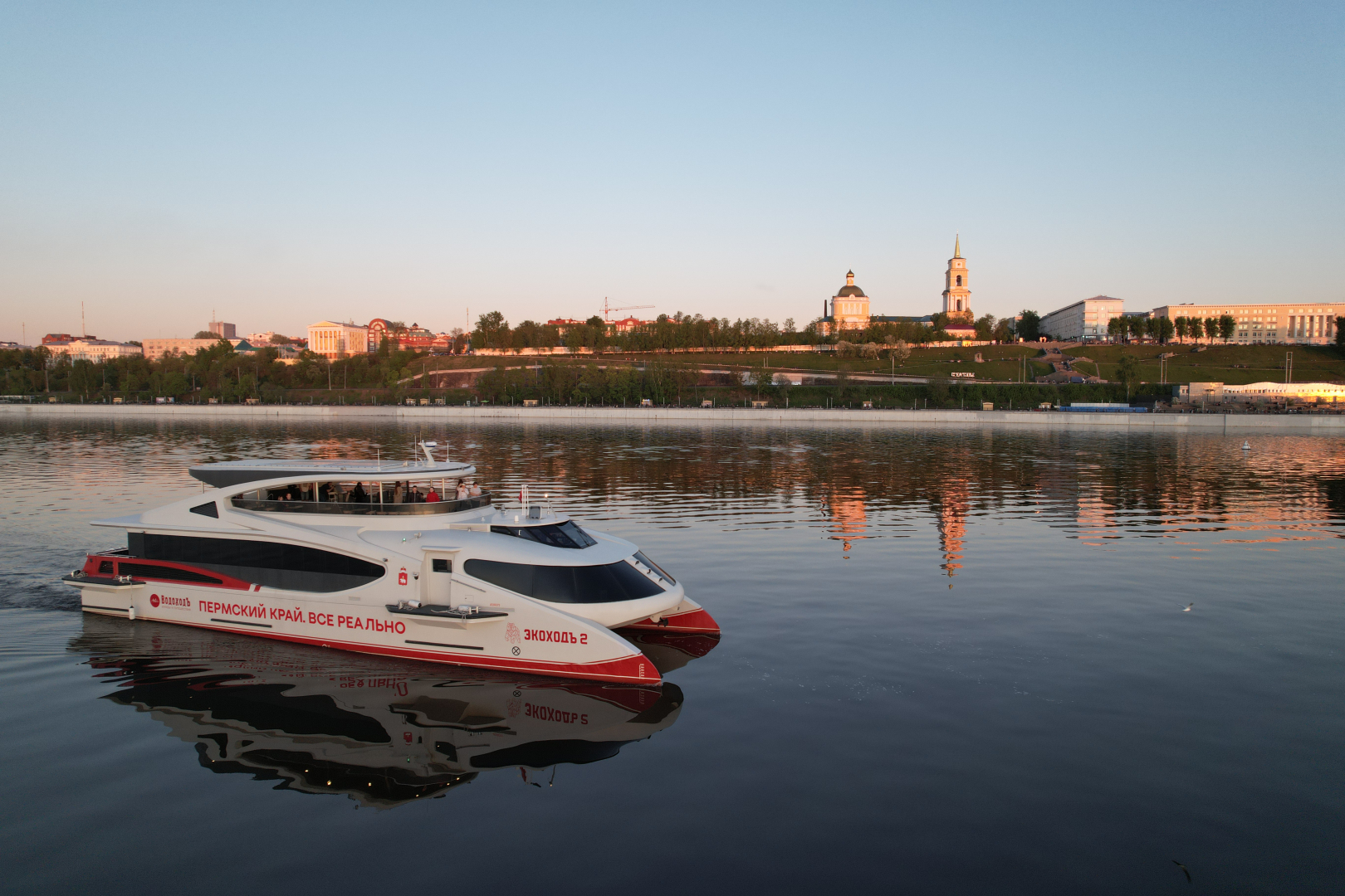 Увеличение пассажиропотока стало возможным благодаря запуску в эксплуатацию дополнительного судна. Электрокатамаран "ЭкоходЪ 2", который эксплуатируется в Перми второй год, дополнило прогулочное судно "Ягошиха".