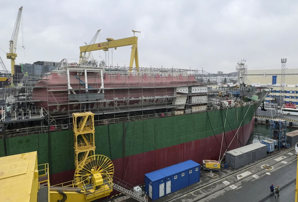 Строящееся на ССК «Звезда» судно готовится к постановке в док и дальнейшему выходу на ходовые и газовые испытания. Длина газовоза — 330 метров, и он рассчитан на перевозку 172 тысяч кубометров сжиженного природного газа.