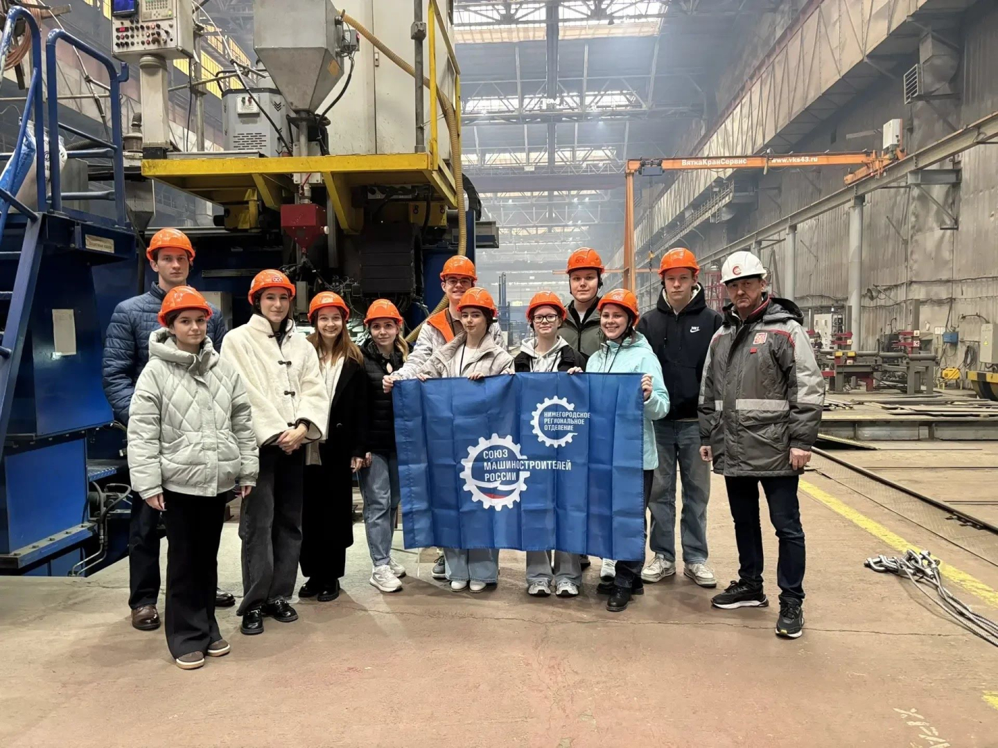 Победители смогли побывать на заводе ОСК «Красное Сормово». 12 школьников и студентов прошлись по основным производственным цехам, побывали на достроечной набережной и в учебном центре завода.